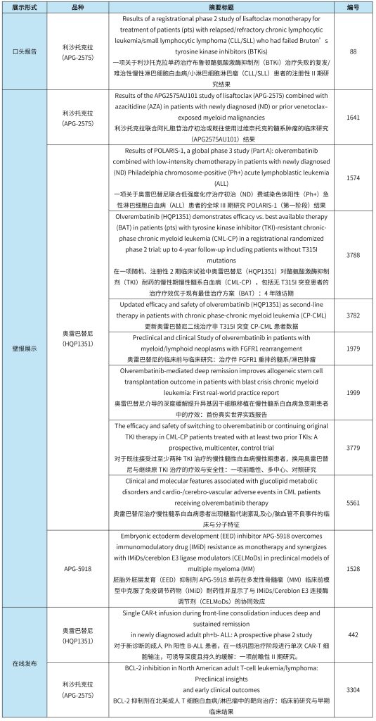 利沙托克拉联合阿扎胞苷治疗初治或既往使用过维奈托克的髓系肿瘤的临床研究(APG2575AU101)结果
